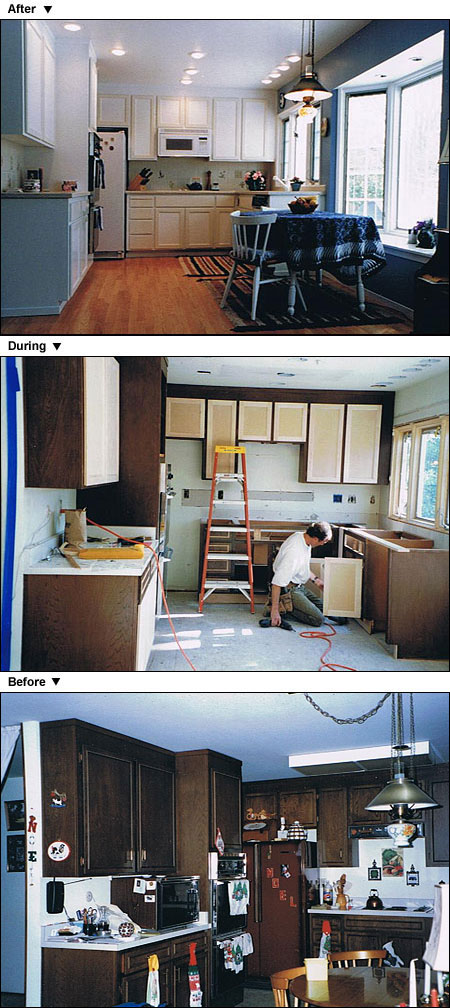 Dark, cluttered kitchen made bright and expanded with big Bay window.
